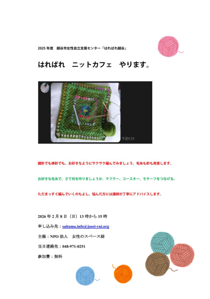 gohan-yui@josei-yui.org (予約・問い合わせ用) 利用についてはこちら https://josei-yui.org/posts/2266 |