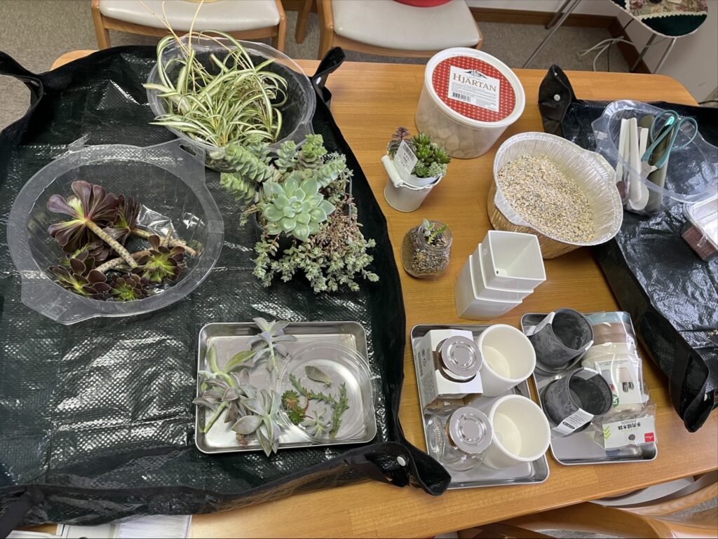 まずは植木鉢を選んで頂き、思い思いに多肉植物を選んで植え込んでいきました。